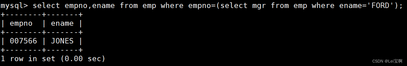显示员工FORD的上级领导的编号和姓名(mgr是员工领导的编号--empno)