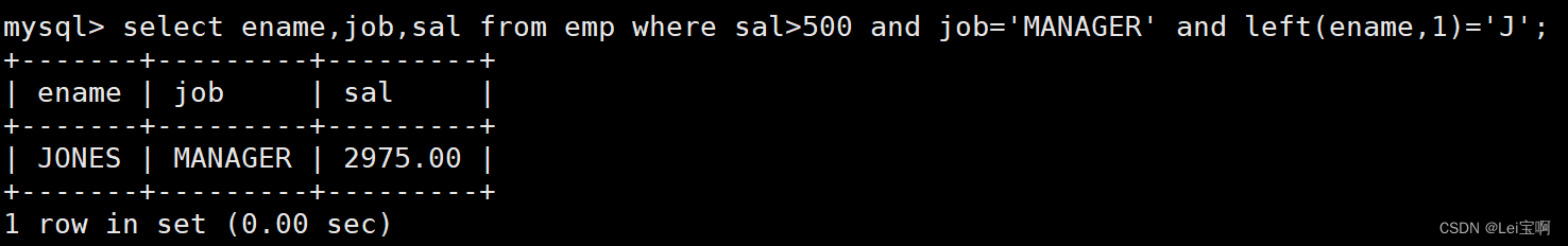 查询工资高于500或岗位为MANAGER的雇员,同时还要满足他们的姓名首字母为大写的J