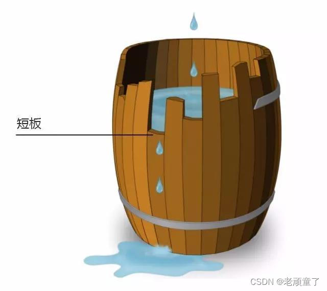 大家都知道木桶理论,一个木桶可以盛纳的水量取决于最短的那个木板(如下图)。系统可用性也是这样,也许99%的地方都考虑了高可用,但是唯独一个地方漏掉了。那么这个1%的点就成了可用性的“阿喀琉斯之踵“,导致系统可用性极低。在本实例中,架构、设计、编码、测试都做好了,结果把运维工具给忘了,导致数据丢失,所有一切都归零了。因此,要保证系统高可用,需要全方面查找系统的短板,然后修正提高。