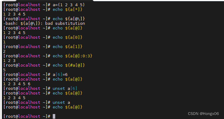 - echo ${a[@]:0:3} //数组中1到3个的元素