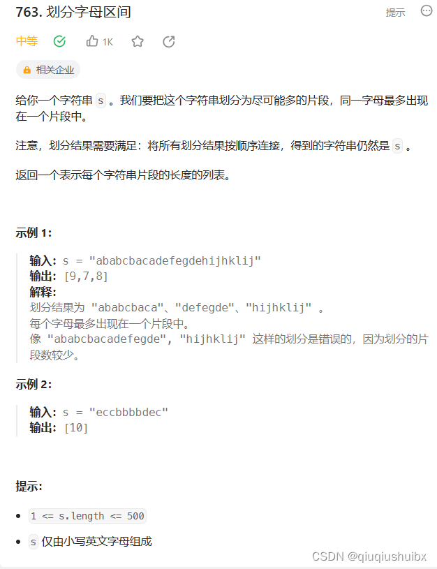 题目链接:763. 划分字母区间 - 力扣(LeetCode)