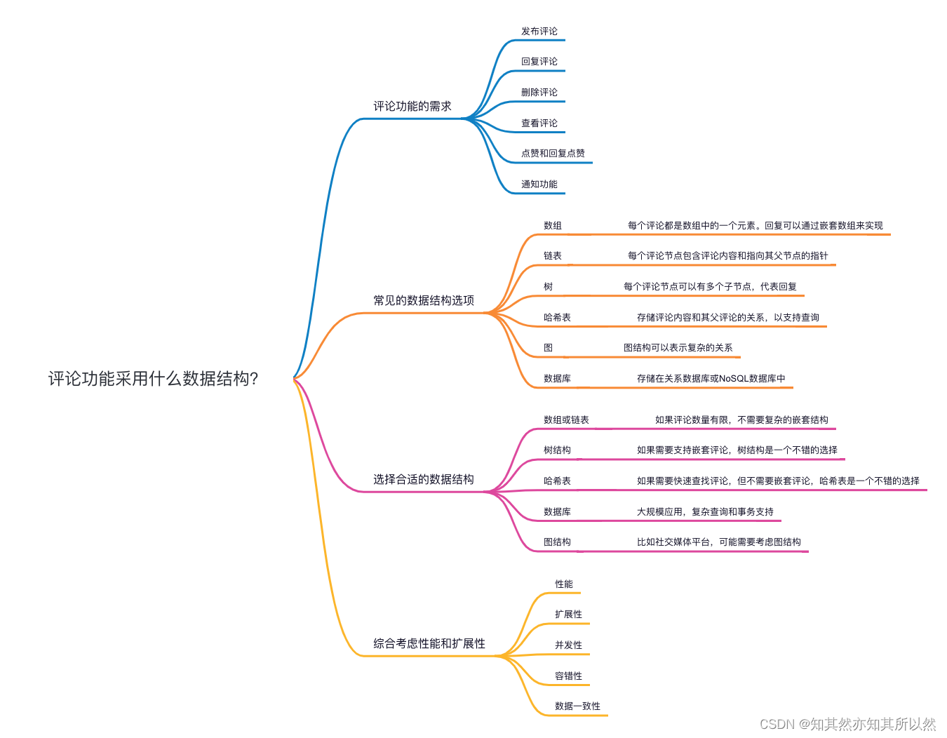 这些需求表明评论功能不仅需要支持数据的增加、修改和删除,还需要支持高效的查询和通知功能。根据不同的数据结构选择,性能、可维护性和扩展性都会受到影响。