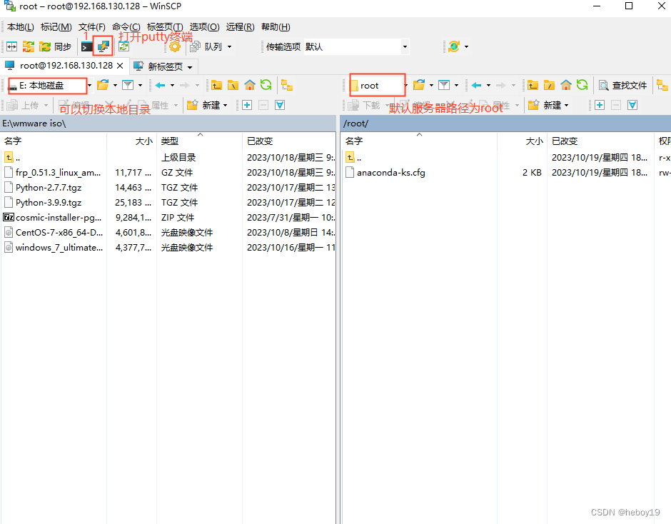 提前通过winscop工具把安装包上传到 /var/heboy 路径下,或者其他xftp也可以,存放路径可以自定义。