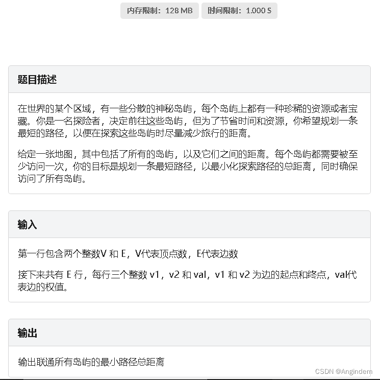 从题干‘每个顶点都要访问一遍’,我们就应该联想到最小生成树,最小生成树中,有朴素版Prim最小生成树算法,和并查集的优化版Kruskal算法,由于这里的数据范围较大,所以我们应该使用并查集的优化版Kruskal算法。
