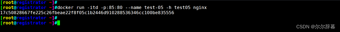 docker run -itd -p:85:80 --name test-05 -h test05 nginx