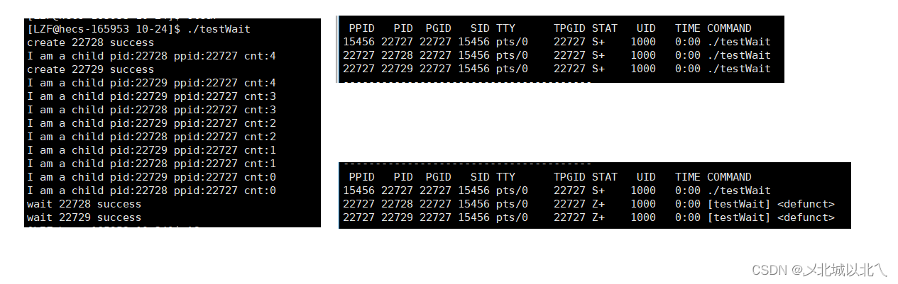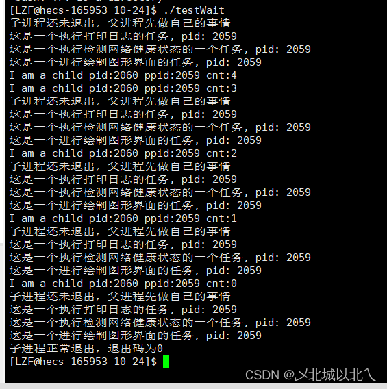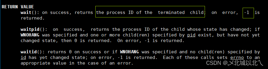 只要没有子进程退出,父进程就会在wait()处一直等待,不返回,默认为阻塞等待状态