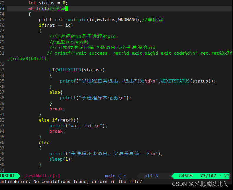 1、wait的主要任务是等待子进程,父进程此时额外做的一般是轻量级的工作,要及时返回
