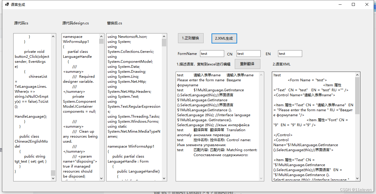 于是开发了个小工具用来替换现有内容并生成语音包,原理就是采用正则表达式进行匹配控件关键字以及中文进行多语言组装解析。