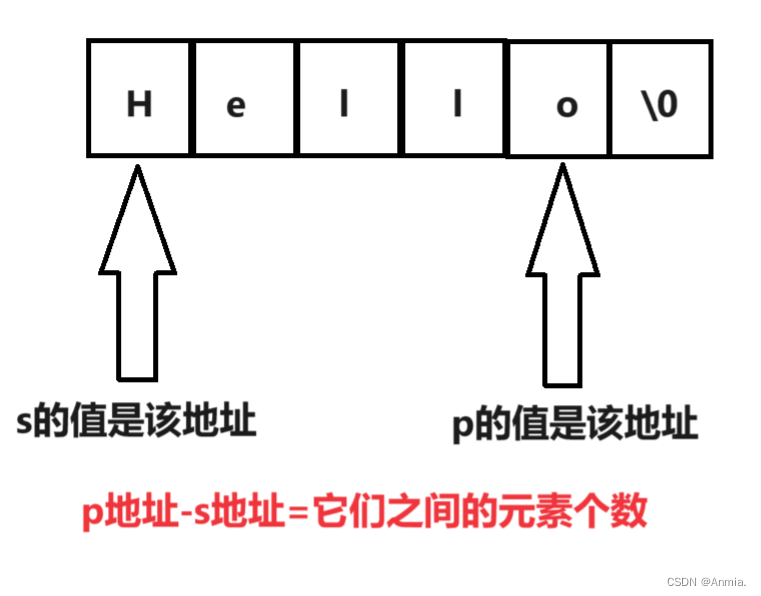 上面代码先写了一个my_strlen函数并传入一个字符串变量的地址,在my_strlen函数中,创建一个指向char类型的指针,把它指向传入的字符串地址。我们都知道char类型的指针一次只能操作一个字节的空间,一个字符刚好是一个字节的空间。因为while循环的意思是指针p依次访问字符串,如果*p=='\0'字符串结束字符,说明字符个数统计结束。最后返回p-s的值,p的值为字符串最后一个字母的地址,s的值是第一个字母的地址。