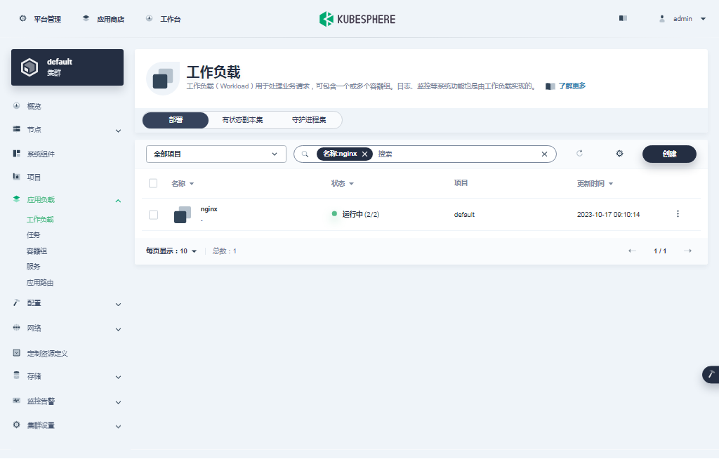 最终我们通过在 Kubenetes 集群上部署 Nginx Web 服务器验证了 Kubernetes 集群和 KubeSphere 的可用性,并通过在 KubeSphere 管理控制台查看 Nginx Pod 和服务状态的操作,了解了 KubeSphere 的基本用法。
