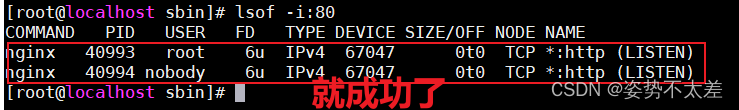 下载lsof 查看是否启动成功 ,输入命令:yum install -y lsof