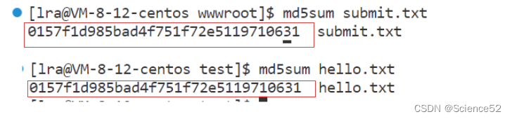 这是我们只需要通过md5sum来比较以下这两个文件是否相同即可: