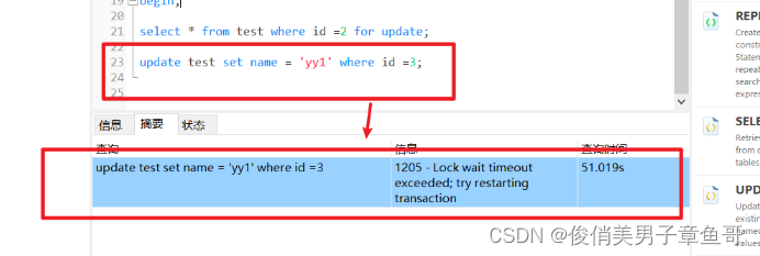 2、 MySQL的默认的死锁机制,会选则一个事务作为思索的牺牲品。会直接终止其中一个事务,但是不会自动回滚。