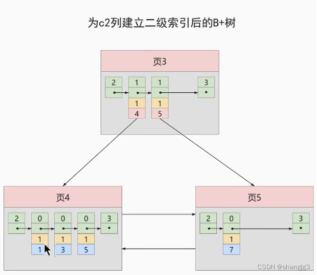 如果二级索引中目录项的内容只是索引号+页号的搭配的话,那么为c2列建立索引后的B+树应该长这样: