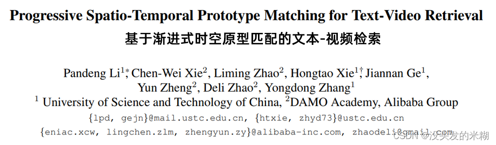 论文链接:https://openaccess.thecvf.com/content/ICCV2023/papers/Li_Progressive_Spatio-Temporal_Prototype_Matching_for_Text-Video_Retrieval_ICCV_2023_paper.pdf