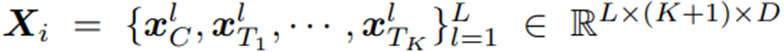是全局帧token特征,K是Patch数量,D是特征维数,Xi的Shape是(K+1) × D。