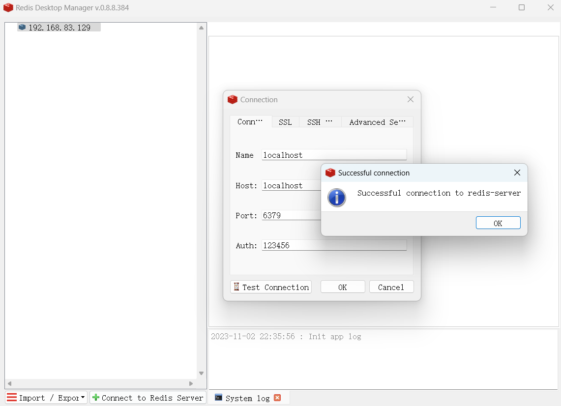 以上为无密码链接,为了安全需要设置密码,并且配置外部链接访问。