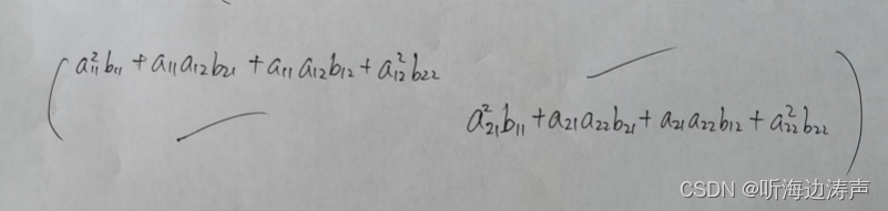 因为我们要求ABA'的迹,所以为了简便,我们只计算出来乘积对角线上的两个元素即可: