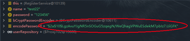 - String encodePassword = bCryptPasswordEncoder.encode(password);