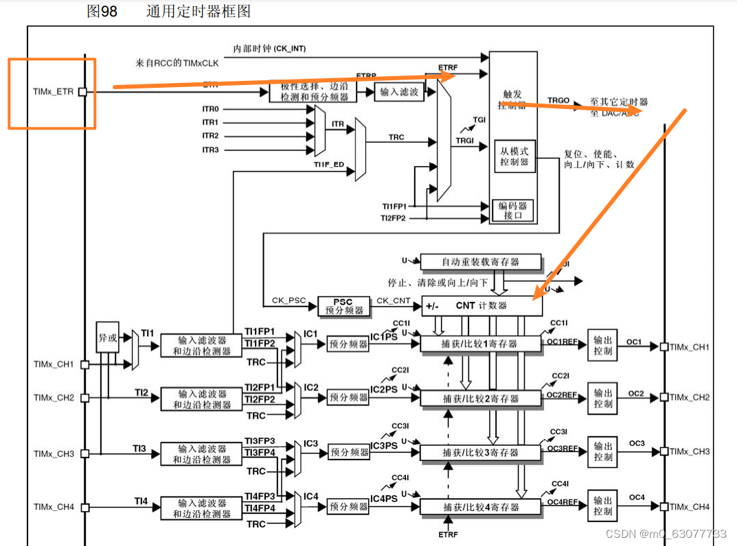 触发控制器会将触发信号传输给其他定 时器的触发输入时钟