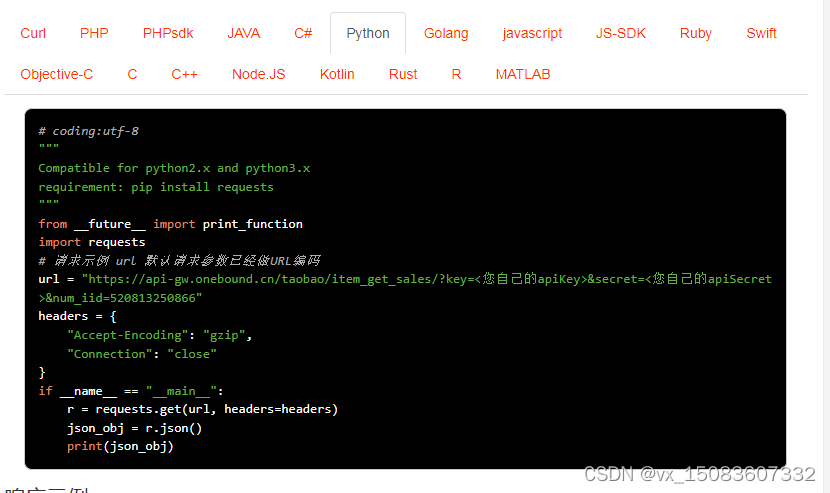 4、发送请求并获取返回的数据,通常是一个包含商品销量信息的JSON对象。