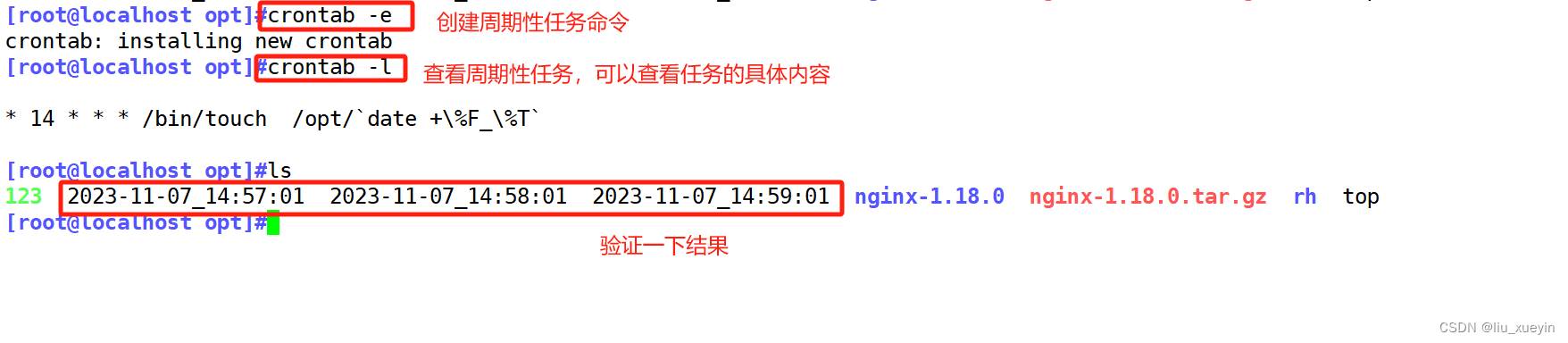 - [root@localhost opt]#crontab -l