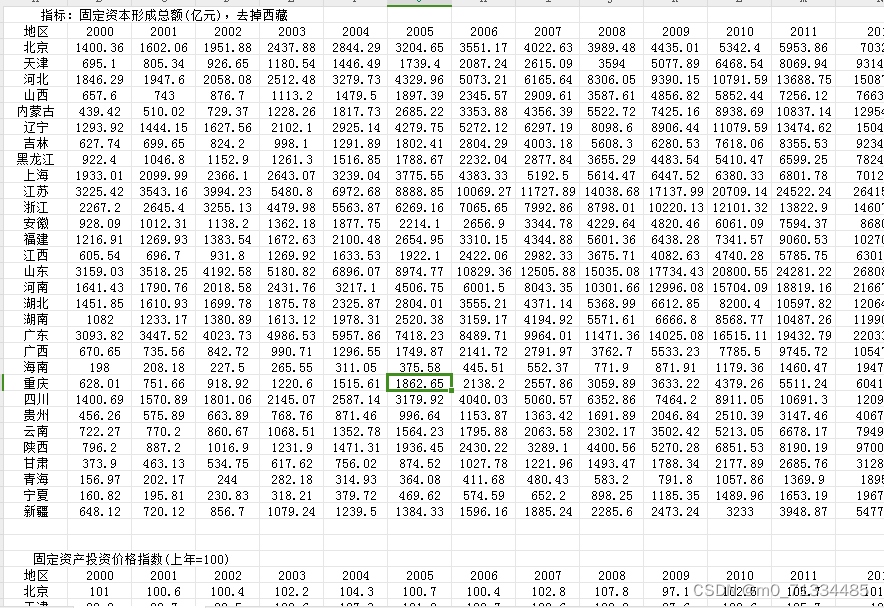 3、指标:固定资产形成总额、固定资产投资价格指数、资本存量(2018-2021年固定资产形成总额利用年增长率计算所得)