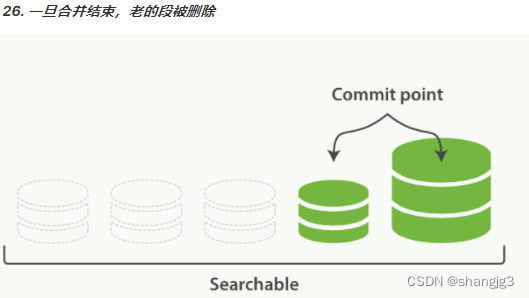 段合并的时候会将那些旧的已删除文档从文件系统中清除。被删除的文档(或被更新文档的旧版本)不会被拷贝到新的大段中。