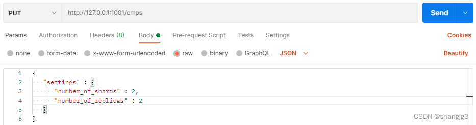我们假设有一个集群由三个节点组成。 它包含一个叫 emps 的索引,有两个主分片,每个主分片有两个副本分片。相同分片的副本不会放在同一节点。