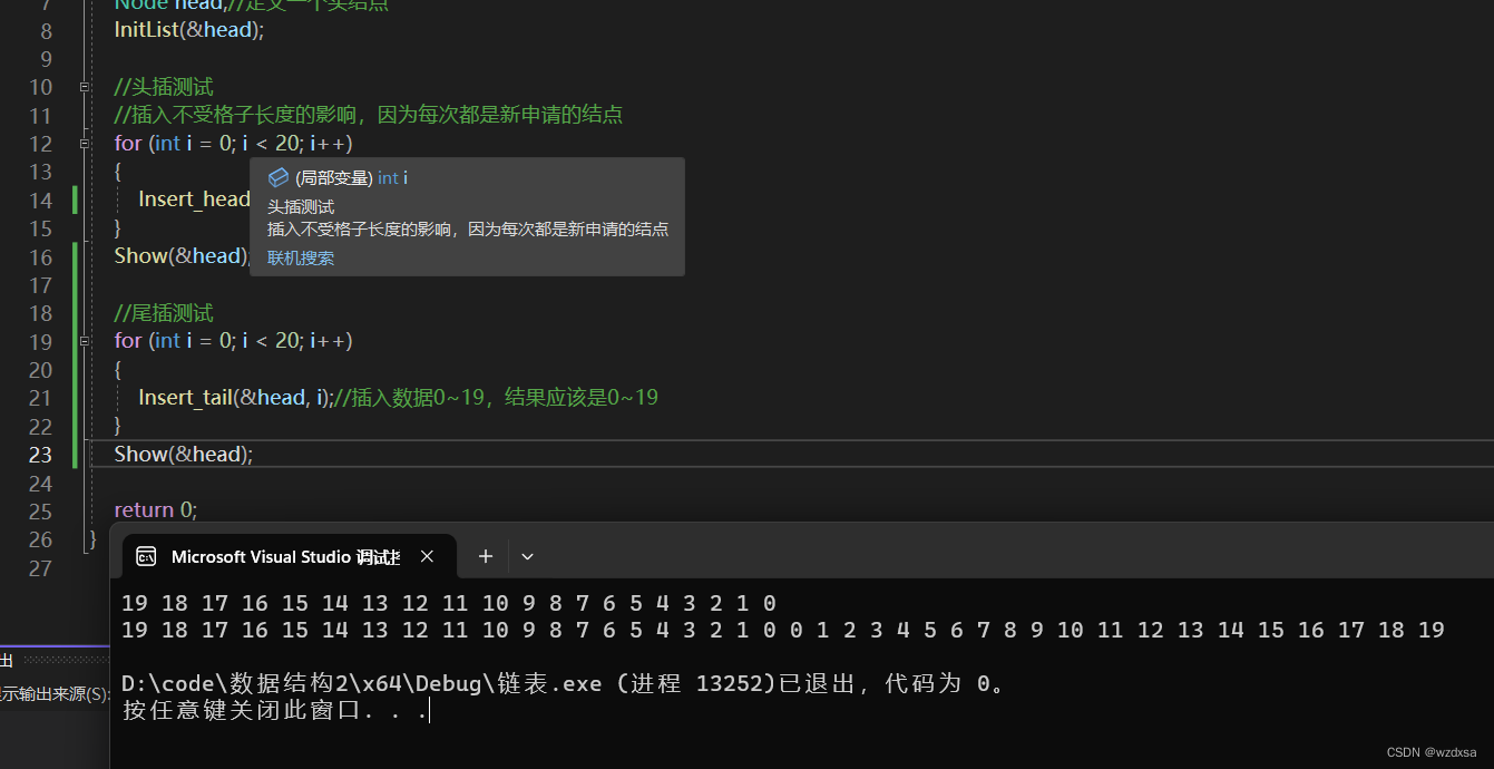 可以看到头插是逆序的,尾插是顺序的。