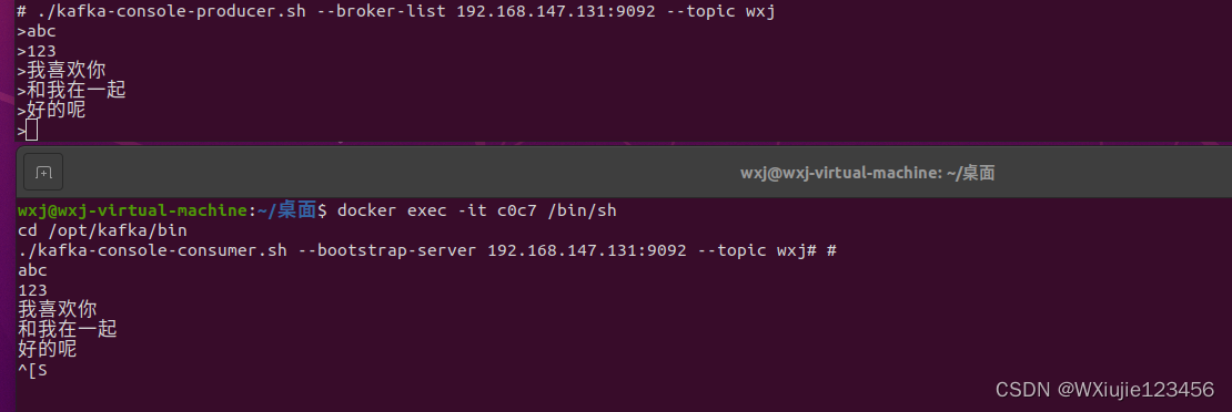 - ./kafka-console-consumer.sh --bootstrap-server 192.168.147.131:9092 --topic wxj