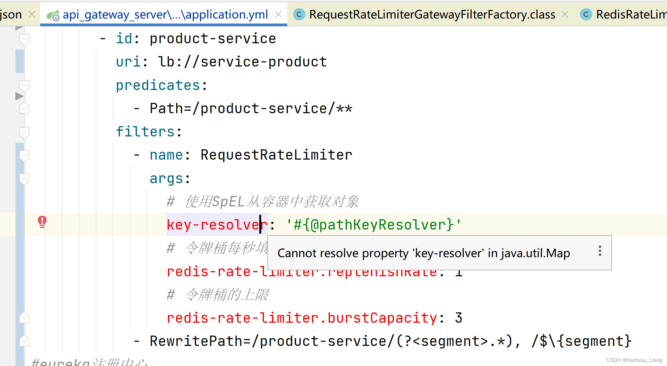 以上配置,根据路由(访问路径)进行限流,限流规则对访问路径匹配product-service开头的路径生效。