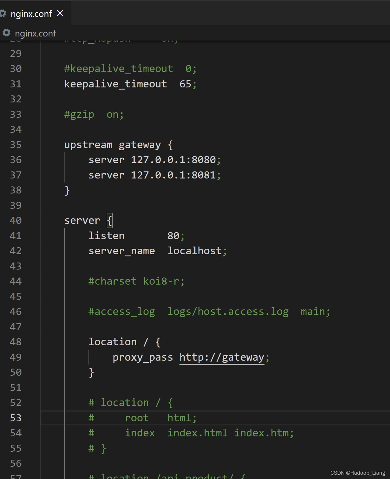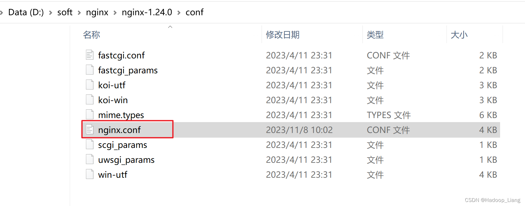修改nginx配置,进入conf目录,修改nginx.conf文件