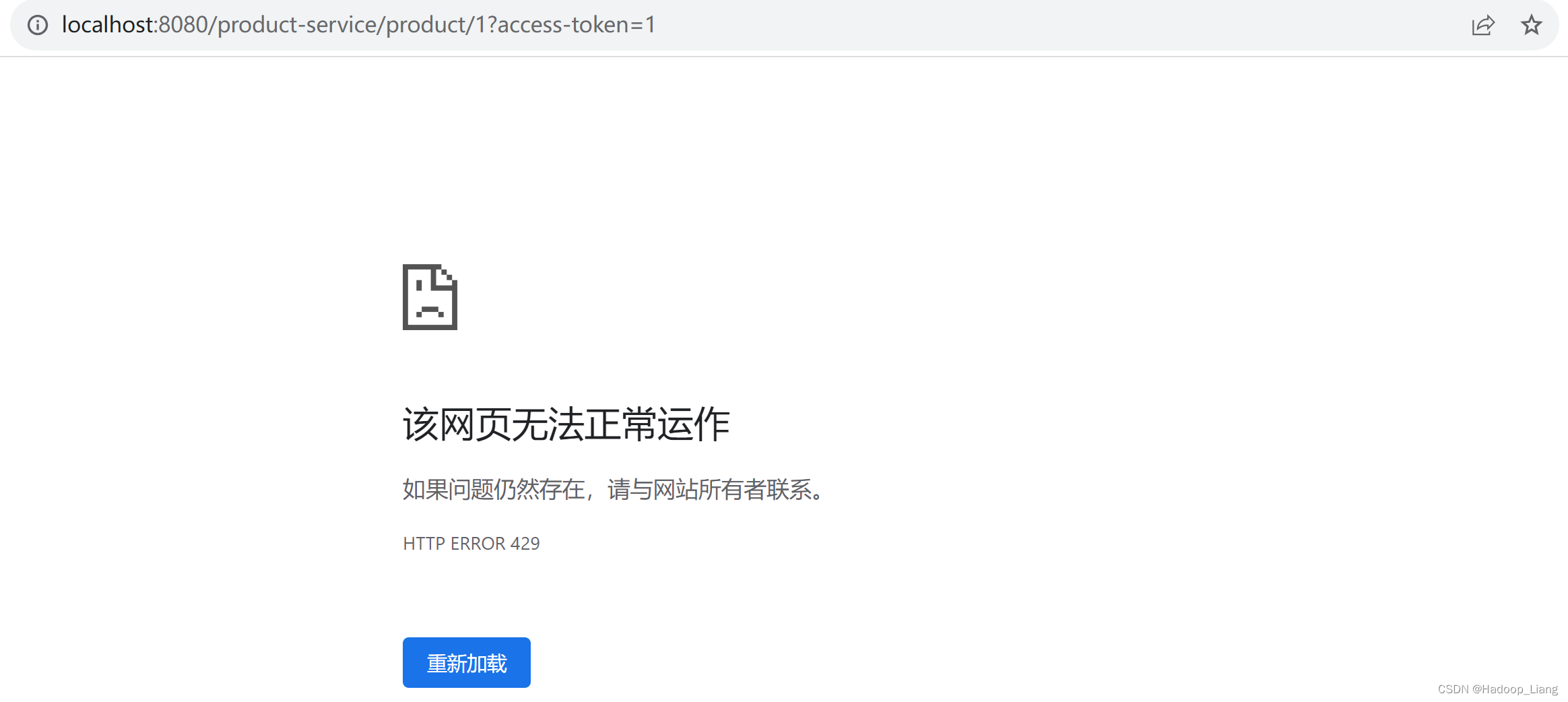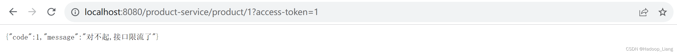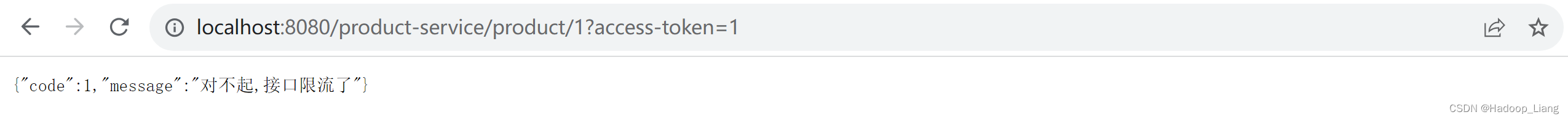 因为路径中包含product-service开头,符合限流规则,所以当访问超出哦阈值后,执行限流操作,看到如上默认的响应信息。