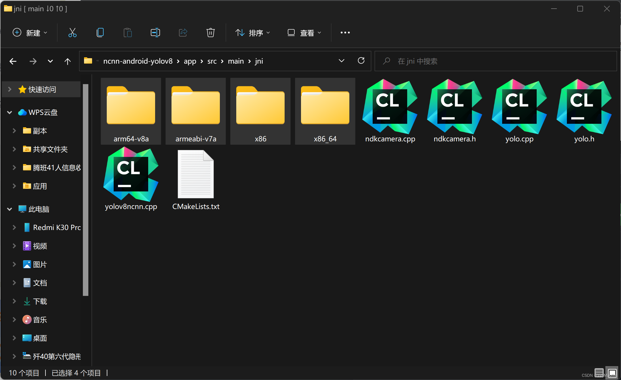 然后解压,把文件夹放到ncnn-android-yolov8的\app\src\main\jni目录下。