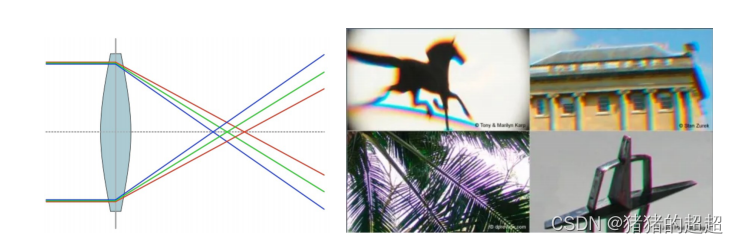 透镜折射率随光的波长而变化,同一物点发出的不同颜色光线无法聚焦于同一像点