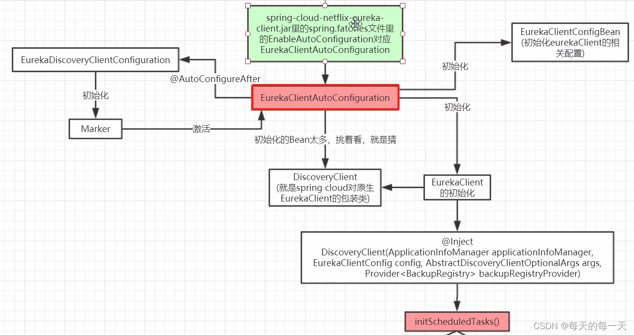 - 把Netflix eureka给集成进spring cloud生态的方式,就是Spring cloud利用spring boot的一些自动装配技术,把Netflix Euraka中启动需要的一些核心bean自动装配进ioc容器中,仅给外部用户在配置文件中暴露一些配置项