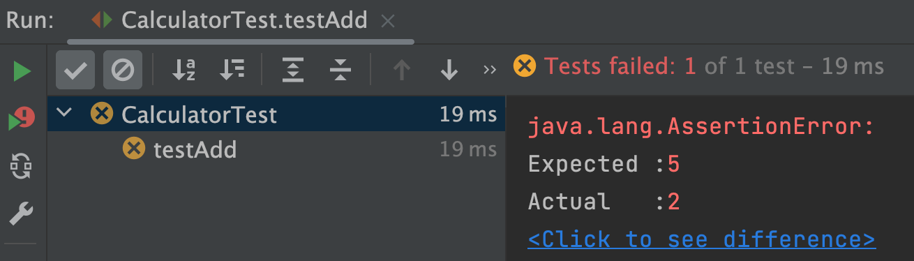 上述代码中的 Assert 类是关键,提供了很多断言方法,比如 assertEquals(是否相等)、assertNull(是否为空)等,用来对比程序实际输出的值和我们预期的值是否一致。