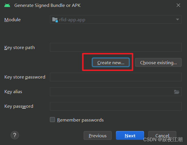 上面这步是用来打包的,我们只需要生成秘钥文件,现在不需要打包,取消即可。