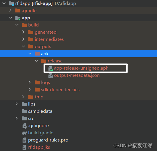 通过下面这张图可以看到已经生成秘钥文件了,如果你的目录结构跟我的不一样,注意看图中的左上角,我选择的是Project的结构,你的应该是Android目录结构。如果你没有看到生成的秘钥文件,需要你鼠标右键app目录,选择Reload from Disk刷新下即可。