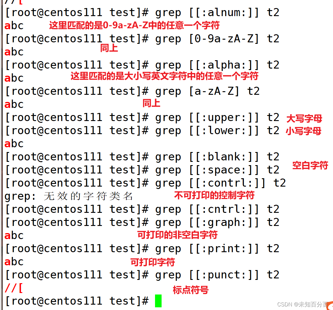 [:cntrl:] 不可打印的控制字符(退格、删除、警铃...)