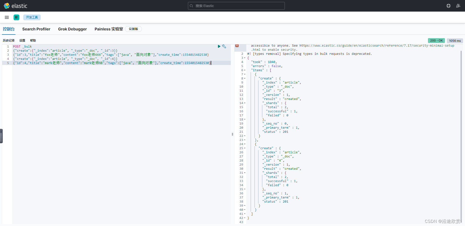 - # 插入文档报错,原因为age为新增字段,会抛出异常