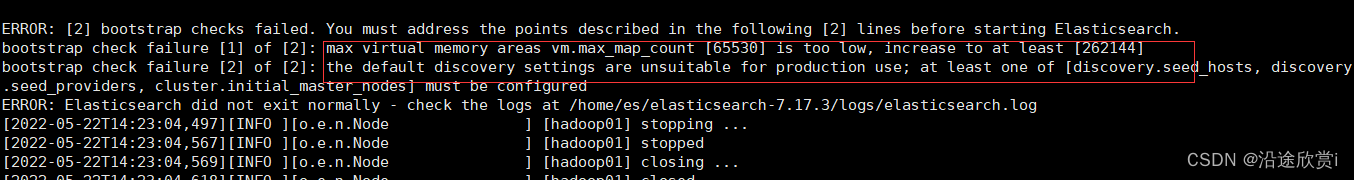 如果ES服务启动异常,会有提示: