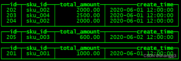 (102,'sku_002',2000.00,'2020-06-01 12:00:00'),