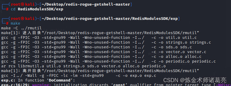 下载完成后,先进入RedisModulesSDK/exp/ 目录进行make操作