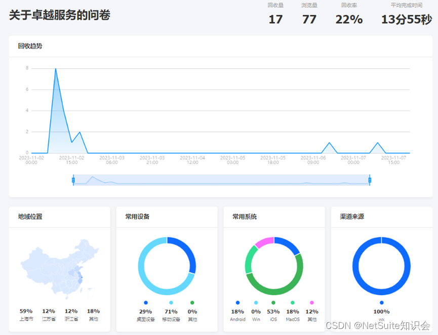 NetSuite知识会发起的本次调研从2023年11月2日开始,到11月12日结束。16日已向参与调研的朋友邮件回复,感谢您的付出!今朝分享此报告,各位同学参考。