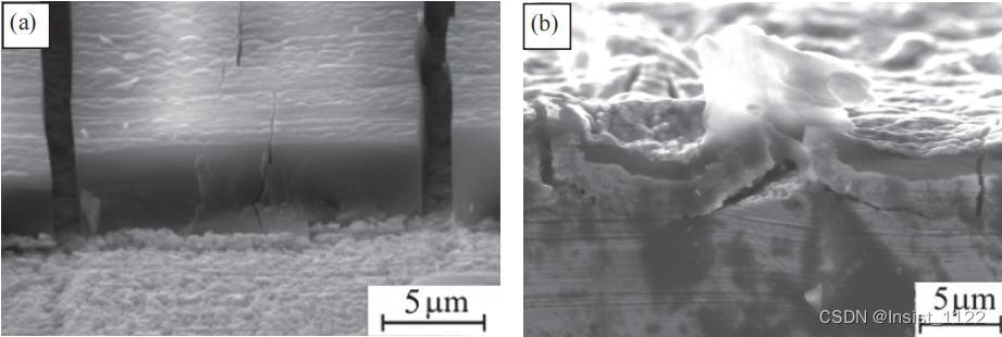 因为碳氮化硅膜的热膨胀系数接近硅衬底的热膨胀系数,所以看起来裂纹是由生长应力而不是热应力引起的。如果剪切应力变得高于界面的极限剪切强度,就会发生薄膜分层。