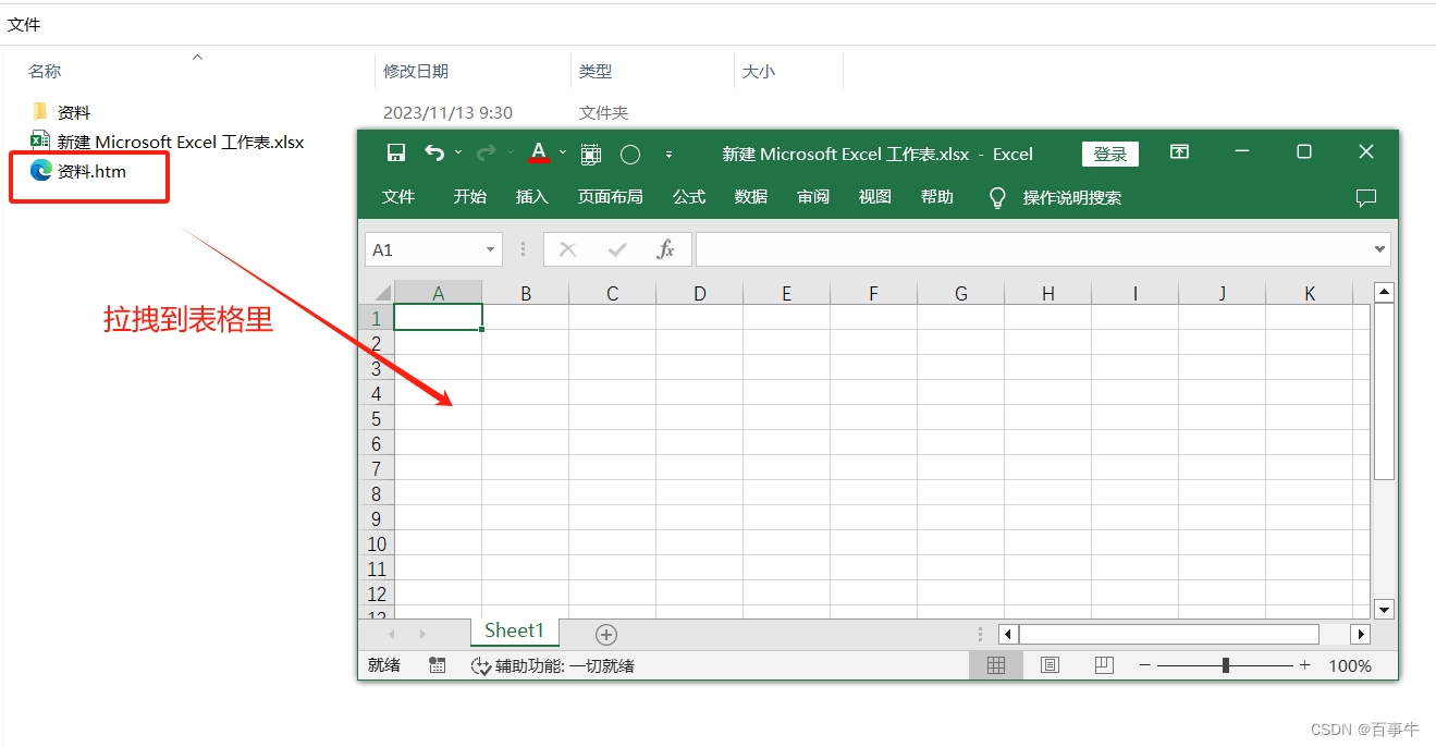完成以上操作后,新建Excel表格,然后找到另存为网页的文件,将其直接拉拽到Excel表格里即可。原Word文档的所有内容,包括表格就都导入到Excel里了。
