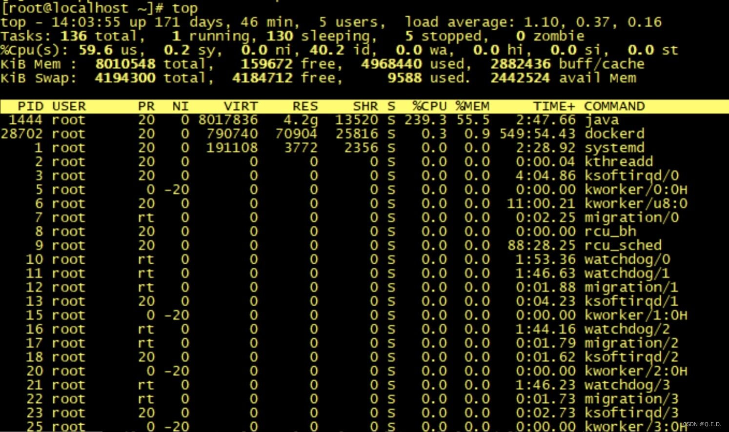 top 命令是我们在 Linux 下最常用的命令之一,它可以实时显示正在执行进程的 CPU 使用率、内存使用率以及系统负载等信息。其中上半部分显示的是系统的统计信息,下半部分显示的是进程的使用率统计信息。