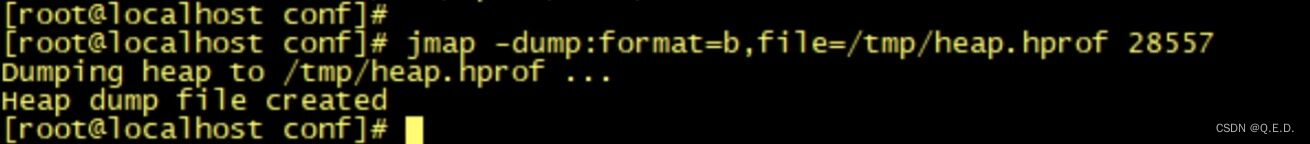 我们可以通过 jmap 命令把堆内存的使用情况 dump 到文件中: